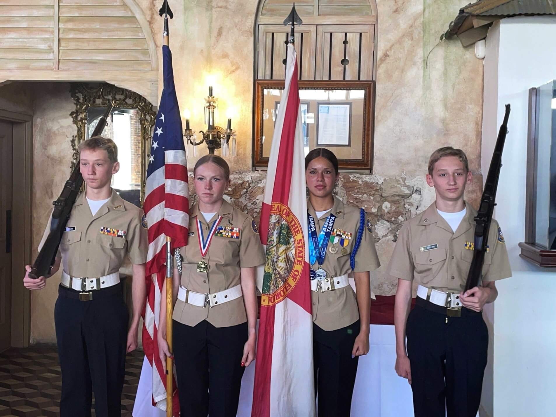 L to R: K. Krivan, I. Selvaggi, Admin Officer, C. Parks, Color Guard Commander, and K. Krivan